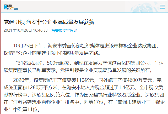 歡迎訪(fǎng)問(wèn)南通市達欣工程股份有限公司官方網(wǎng)站!