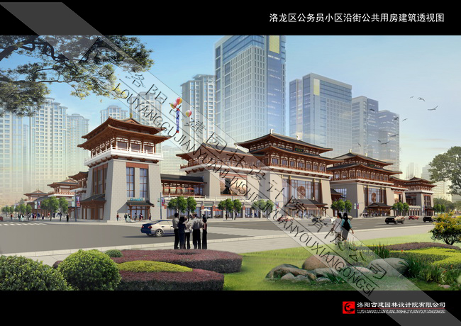 洛陽(yáng)市洛龍區(qū)公務(wù)員小區(qū)沿龍門大道建筑為仿唐風(fēng)墩臺(tái)式建筑群,南北長(zhǎng)110米,東西寬40多米,高四層局部五層。唐代建筑規(guī)模宏大,氣勢(shì)磅礴,形體俊美,莊重大方,整齊而不呆板,華美而不纖巧,舒展而不張揚(yáng),古樸卻富有活力,建筑藝術(shù)加工和結(jié)構(gòu)的完美統(tǒng)一,斗拱的結(jié)構(gòu)、柱子的形象、梁的加工等都達(dá)到了力與美的統(tǒng)一。而色調(diào)簡(jiǎn)潔明快,屋頂舒展平遠(yuǎn),門窗樸實(shí)無(wú)華,給人莊重,大方的印象。
