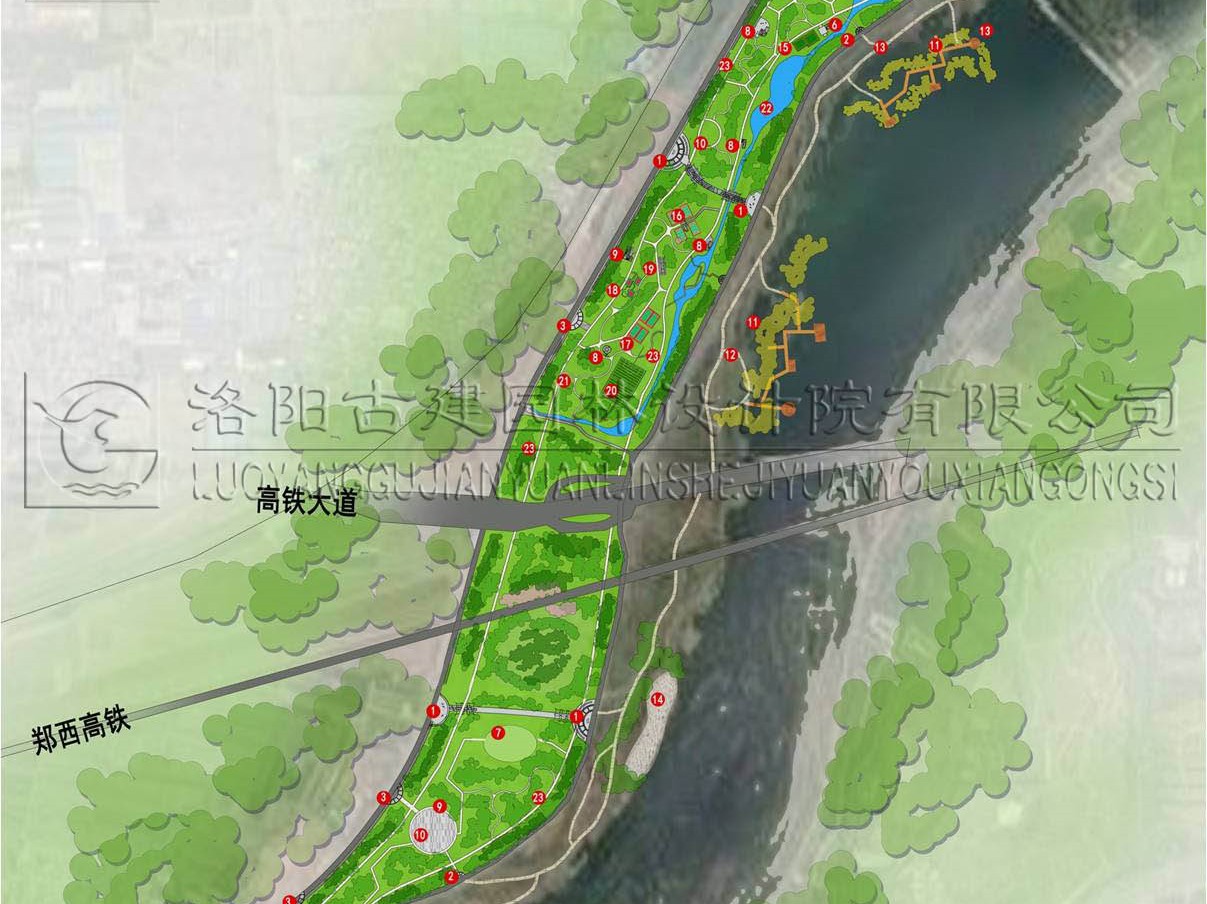 以生態(tài)優(yōu)先、森林景觀、功能復(fù)合、經(jīng)濟(jì)適用為原則,把握“人性化、生態(tài)化、本土化”的內(nèi)涵,建設(shè)成以生態(tài)綠化為基礎(chǔ)適當(dāng)布局體育運(yùn)動(dòng)、健身步道的伊水游園。