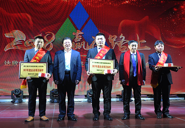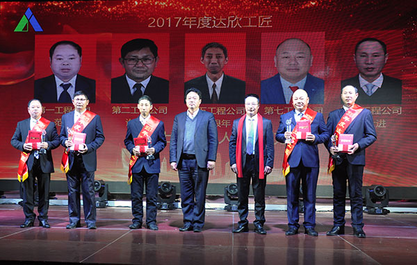 集團黨委書(shū)記劉厚純宣讀了表彰決定, 縣領(lǐng)導為獲得集團2017年度的項目標桿、達欣工匠、青年標兵等先進(jìn)代表進(jìn)行了頒獎。