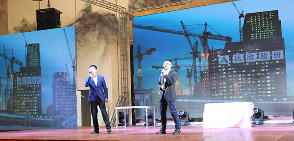 集團高管們在澎湃的“我們走在大路上”聲中激情登場(chǎng),公司董事長(cháng)馬和軍進(jìn)行了致辭答謝。他回顧了集團一年來(lái)所取得的輝煌成績(jì),感謝社會(huì )各界及全體達欣人的努力,并對公司的未來(lái)之路描繪了新的發(fā)展藍圖;接著(zhù),縣委書(shū)記顧國標發(fā)表講話(huà), 他指出,作為全縣經(jīng)濟社會(huì )發(fā)展的重要板塊,我縣建筑業(yè)總體發(fā)展態(tài)勢良好,總量和質(zhì)量穩步提升。作為“海安建筑鐵軍”中的一支老牌“勁旅”,達欣集團的市場(chǎng)競爭力和品牌影響力不斷提升,他對公司2018年工作提出了新的希望,寄語(yǔ)未來(lái)集團要進(jìn)一步深化企業(yè)體制機制創(chuàng )新,全面加快產(chǎn)業(yè)升級步伐,全面實(shí)施“科技強企”戰略,搶抓機遇,精準定位,打造達欣更加輝煌的未來(lái)!