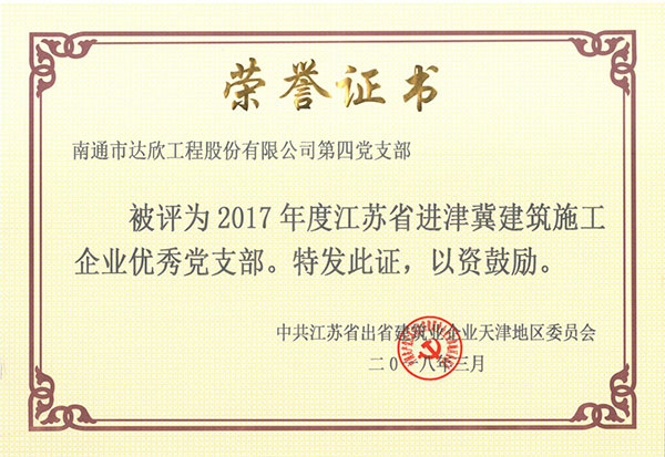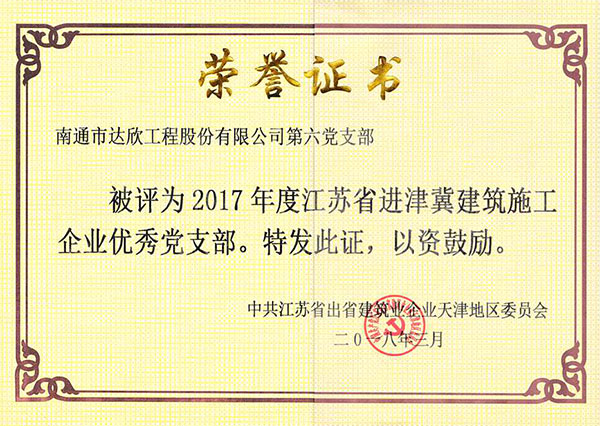 公司在冀連續六年榮獲“江蘇省出省施工先進(jìn)企業(yè)”