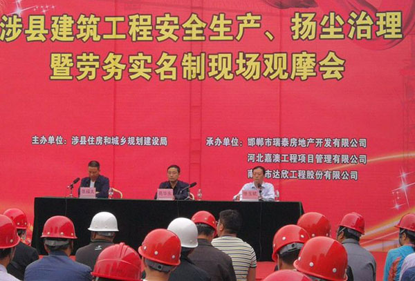 河北涉縣建筑工程安全生產(chǎn)、揚塵治理暨勞務(wù)實(shí)名制現場(chǎng)觀(guān)摩會(huì )在第三工程公司御湖天城項目召開(kāi)