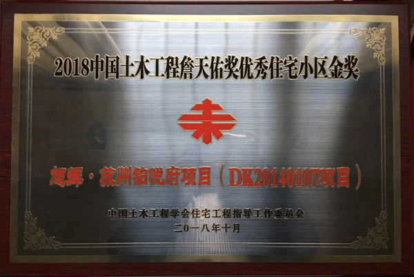喜訊!達欣集團承建的旭輝?蘇州鉑悅府榮獲2018年中國土木工程詹天佑獎優(yōu)秀住宅小區金獎