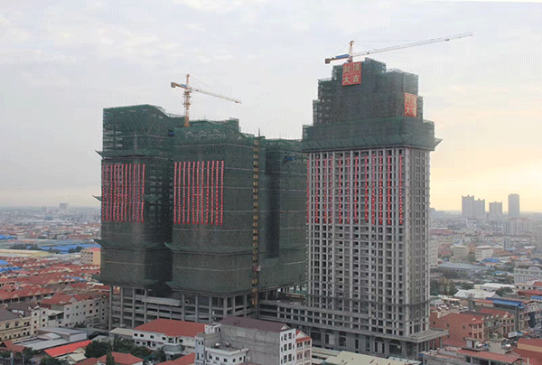 金冠封頂,全球共賞。1月12日上午,隨著(zhù)最后一斗混凝土澆灌順利完成,標志著(zhù)金百匯國際項目整體榮耀封頂,百匯投資有限公司總經(jīng)理林寶庭、公司監事,南通市達欣工程(柬埔寨)股份有限公司經(jīng)理江慶華等領(lǐng)導以及在柬投資的企業(yè)家、商會(huì )代表共同見(jiàn)證了這一激動(dòng)人心的時(shí)刻。