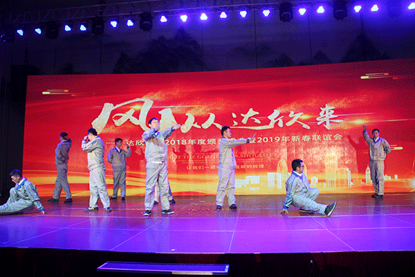 年會(huì )上,由各工程公司自編自演的各種舞蹈、歌唱、小品等輪番上演,共同演繹出達欣人愛(ài)企、愛(ài)家的良好精神風(fēng)貌,臺上節目精彩紛呈,臺下掌聲此起彼伏,大家在歡歌笑語(yǔ)中開(kāi)懷敘情,共祝集團明天更美好。