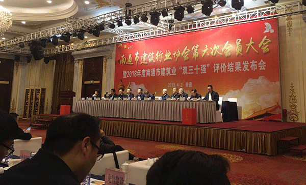 4月2月,南通市建筑行業(yè)協(xié)會(huì )第六次會(huì )員大會(huì )暨2018年度南通市建筑業(yè)“雙三十強”企業(yè)評價(jià)結果發(fā)布會(huì )在南通金石國際大酒店召開(kāi),南通市建筑行業(yè)協(xié)會(huì )會(huì )長(cháng),常務(wù)理事、理事及會(huì )員單位的代表共250余人參加了會(huì )議。