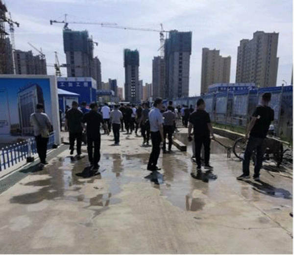 項目負責人詳細介紹了工程安全管理、文明施工做法以及工地揚塵治理六個(gè)100%、四條強化具體措施。參加人員對現場(chǎng)安全文明施工標準化和揚塵治理“6+4”措施進(jìn)行了交流、觀(guān)摩、學(xué)習。