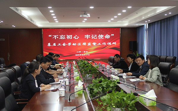 江蘇省總工會(huì )法律工作部主任科員劉為偉、 江蘇省總工會(huì )法律工作部副主任科員趙萌萌、 南通市總工會(huì )主席助理陳志祥、南通市總工會(huì )法律工作部副部長(cháng)龔亞樂(lè )陪同調研。