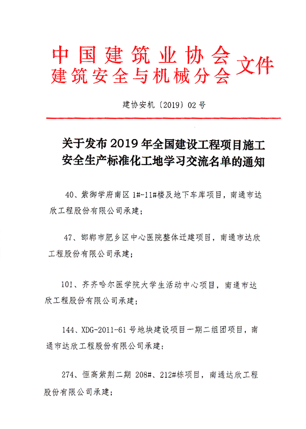 “全國建設工程項目施工安全生產(chǎn)標準化工地”由中國建筑協(xié)會(huì )建筑安全分會(huì )在全國范圍內組織開(kāi)展的大型評選活動(dòng),是國家建設部批準的全國范圍內建筑安全文明施工領(lǐng)域的最高獎項,旨在規范施工安全生產(chǎn)工作,保障建筑職工生命安全與健康。此項殊榮的獲得,將進(jìn)一步提高了集團項目的標準化管理水平,營(yíng)造良好的安全生產(chǎn)氛圍,為提升企業(yè)形象、促進(jìn)企業(yè)長(cháng)遠發(fā)展奠定堅實(shí)的品牌基礎。