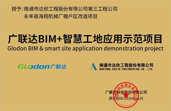 調研期間與項目BIM團隊人員進(jìn)行了互動(dòng)交流,經(jīng)過(guò)一系列的驗收標準考核后,最終授予該項目“廣聯(lián)達BIM+智慧工地應用示范項目”稱(chēng)號。