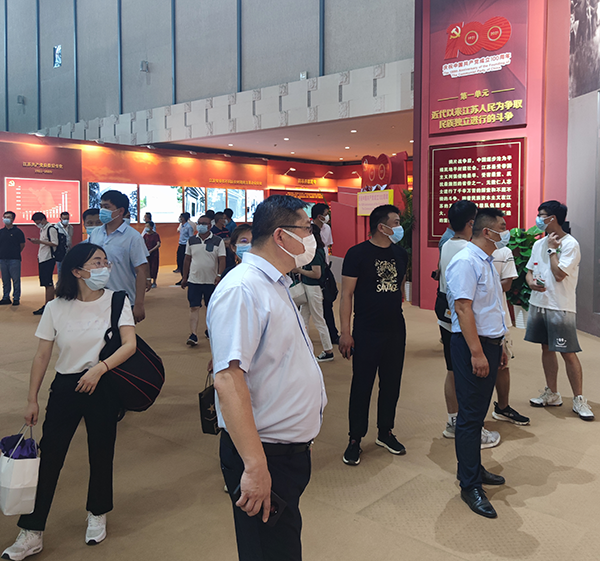 為慶祝中國共產(chǎn)黨成立100周年,回顧黨的光輝歷程,激勵廣大黨員繼承和發(fā)揚黨的光榮傳統,牢記初心使命。7月11日上午,在第二黨支部書(shū)記陳根軍同志的帶領(lǐng)下,所有黨員及管理人員參觀(guān)“百年征程 初心永恒—中國共產(chǎn)黨在江蘇歷史展”。