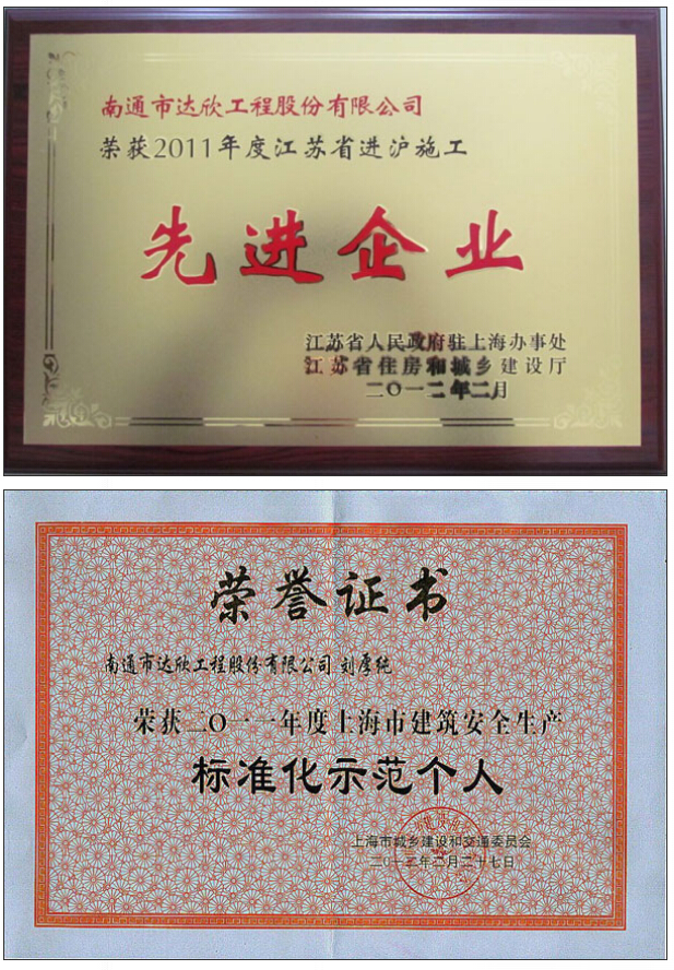 第一工程公司連續五年榮獲江蘇省進(jìn)滬施工先進(jìn)企業(yè)