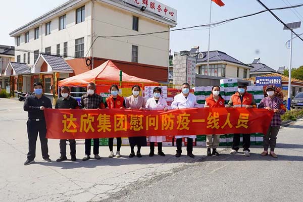 4月8日,達欣集團·魯班傳人志愿服務(wù)總隊在黨委書(shū)記劉厚純的帶領(lǐng)下,來(lái)到胡集街道胡集花苑“疫”線(xiàn)卡口,看望慰問(wèn)奮戰在抗疫一線(xiàn)的工作人員,為他們送上牛奶、面包、火腿腸、方便面等近萬(wàn)元的物資,為助力本土疫情防控奉獻達欣人的愛(ài)心與力量。