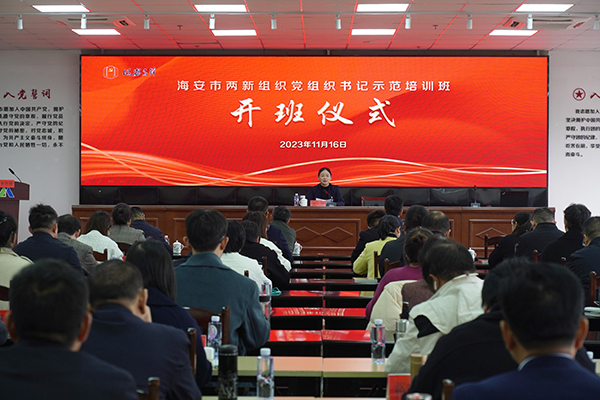 11月16日,全市兩新組織黨組織書(shū)記示范培訓班開(kāi)班儀式在達欣集團舉行,海安市委組織部常務(wù)副部長(cháng)、“兩新”工委書(shū)記、黨建辦主任吳蘭,各區鎮街道組織委員、培訓班全體學(xué)員、高新區兩新組織黨組織書(shū)記代表等100多人出席活動(dòng)。集團在海領(lǐng)導馬和軍、杭小建、劉厚純參加活動(dòng)。