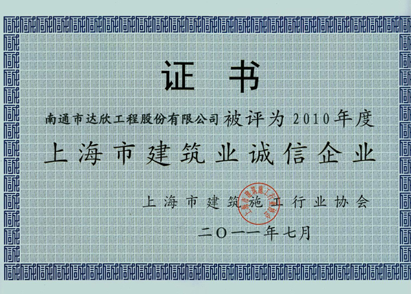 “上海市建筑業(yè)誠信企業(yè)”評選活動(dòng)由上海市建筑施工行業(yè)協(xié)會(huì )組織,每年舉辦一次,宗旨在于不斷推進(jìn)建筑施工企業(yè)的行業(yè)自律和誠信建設,提高建筑施工企業(yè)的綜合實(shí)力,促進(jìn)行業(yè)健康發(fā)展。第一工程公司在誠信體系建設中,充分發(fā)揮表率作用,勇當誠信龍頭。通過(guò)管理創(chuàng )新,將企業(yè)誠信建設納入公司經(jīng)營(yíng)管理的全過(guò)程。制定誠信體系、誠信教育管理、誠信承諾管理、誠信評價(jià)管理等一系列誠信管理制度,推動(dòng)誠信建設工作,創(chuàng )出了較好的經(jīng)濟效益和社會(huì )效益,同時(shí),也樹(shù)立了達欣公司誠實(shí)守信的良好社會(huì )形象。