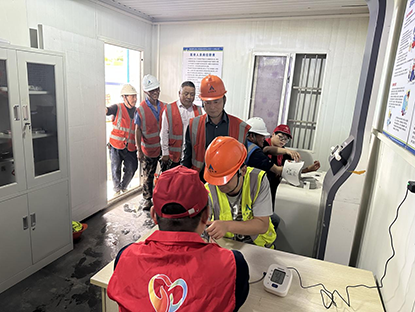 5月30日,第一志愿服務(wù)分隊聯(lián)合上海中醫藥大學(xué)醫學(xué)專(zhuān)業(yè)的實(shí)習生,到蘇州平江項目為一線(xiàn)職工進(jìn)行健康防范知識、急救常識普及,工友們一一向醫護人員詢(xún)問(wèn)日常工作中遇到的健康問(wèn)題,了解了高血壓、高血脂和糖尿病等慢性病的預防和治療情況,讓工友學(xué)到了很多日常預防疾病的小知識。此外,志愿者們還用智能體檢機器人逐一為工友進(jìn)行了血壓、血糖、體脂等一系列常規的健康檢查。