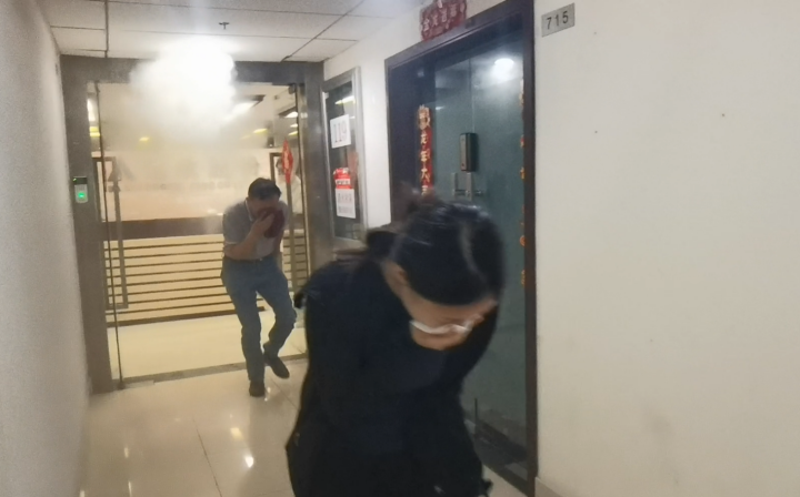 現場(chǎng)從發(fā)現著(zhù)火點(diǎn)、報警、疏散人員等情景開(kāi)展模擬演練。隨著(zhù)火警警報的響起,在場(chǎng)人員立即按照預先制定的疏散方案行動(dòng)。大家迅速采取“彎腰低頭、捂鼻貼墻”的逃生姿勢,在疏散過(guò)程中,大家保持冷靜,有序地沿著(zhù)疏散通道向室外撤離。