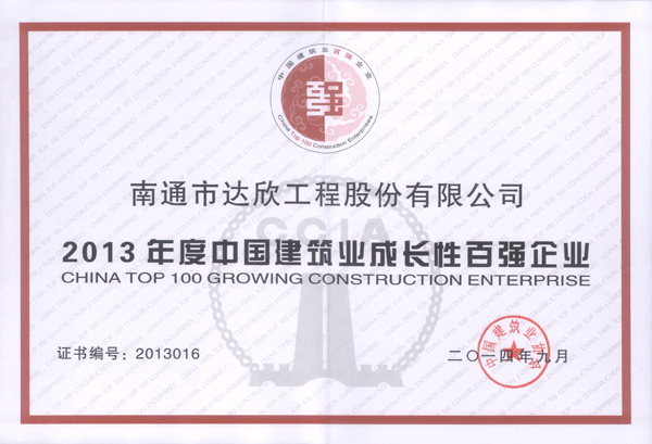 公司連續三年入選中國建筑業(yè)成長(cháng)性百強企業(yè)