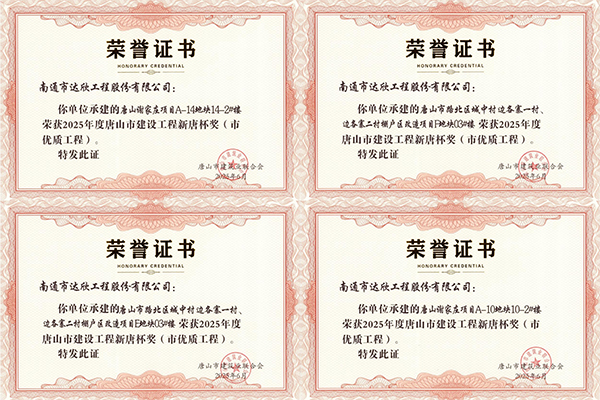 近日,從唐山市建筑業(yè)聯(lián)合會(huì )傳來(lái)捷報,由第六工程公司承建的唐山市路北區城中村邊各寨一村、邊各寨二村棚戶(hù)區改造項目E地塊03#樓,唐山市路北區城中村邊各寨一村、邊各寨二村棚戶(hù)區改造項目F地塊03#樓,唐山謝家莊項目A-10地塊10-2#樓,唐山謝家莊項目A-14地塊14-2#樓4項工程獲得唐山市建筑工程新唐杯獎(市優(yōu)質(zhì)工程)。