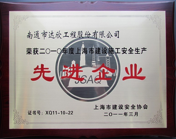 日前南通市達欣工程股份有限公司被上海市建筑安全協(xié)會(huì )評為“二0一0年度上海市建設施工安全生產(chǎn)先進(jìn)企業(yè)”。這是第一工程公司連續四年獲此殊榮。