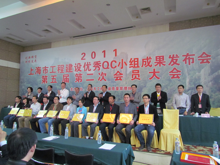 4月17日上海市工程建設質(zhì)量管理協(xié)會(huì )召開(kāi)2011年建設工程優(yōu)秀QC小組活動(dòng)成果發(fā)布會(huì )暨第五屆第二次會(huì )員大會(huì )。第一工程公司選送的 “攻克3m厚大體積砼底板裂縫”、“提高施工現場(chǎng)安全達標優(yōu)良率”、“推行‘四節一環(huán)?!行Ы档凸こ坛杀尽?、“提高建筑幕墻工程的施工質(zhì)量”、“有效控制填充墻內混凝土構造柱裂縫”、“有效控制斜屋面混凝土施工質(zhì)量”、“提高YTONG砂加氣砼砌塊砌筑合格率”、“有效提高模板工程施工質(zhì)量”、“降低明珠城三期工程鋼筋損耗”等九項QC成果均參加本次活動(dòng)的發(fā)布與交流。這次江蘇省在滬企業(yè)參加QC成果發(fā)布、交流共83篇,我公司就占據其中的14%,得到了駐滬辦領(lǐng)導的充分肯定。工程公司也被上海市工程建設質(zhì)量管理協(xié)會(huì )評為2011年上海市建設質(zhì)量管理小組活動(dòng)優(yōu)秀企業(yè)。