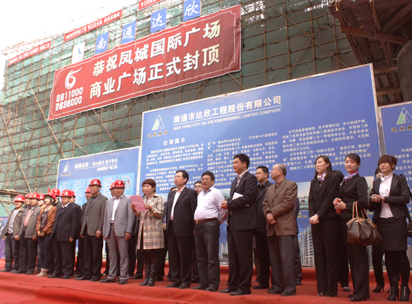 在4月15日的裙樓封頂儀式上,唐山天壤房地產(chǎn)開(kāi)發(fā)有限公司闞春鳳董事長(cháng)首先向全體參建人員表示衷心的感謝,對達欣公司在工程建設中所做的努力給予高度評價(jià)和充分肯定,她在最后致詞中堅信:在達欣股份等諸多品牌公司的通力協(xié)作之下,在全體參建人員的共同努力下,鳳城國際廣場(chǎng)項目一定會(huì )如期完成。