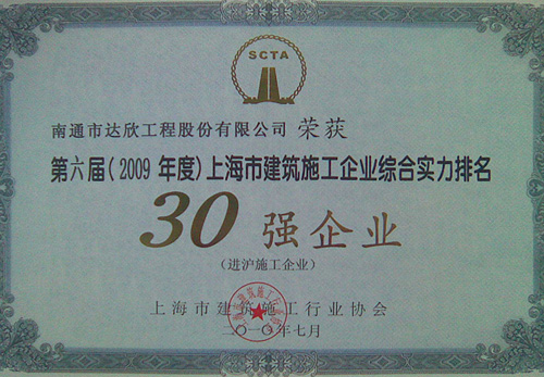 達欣股份榮獲上海市建筑施工企業(yè)綜合實(shí)力30強企業(yè)稱(chēng)號
